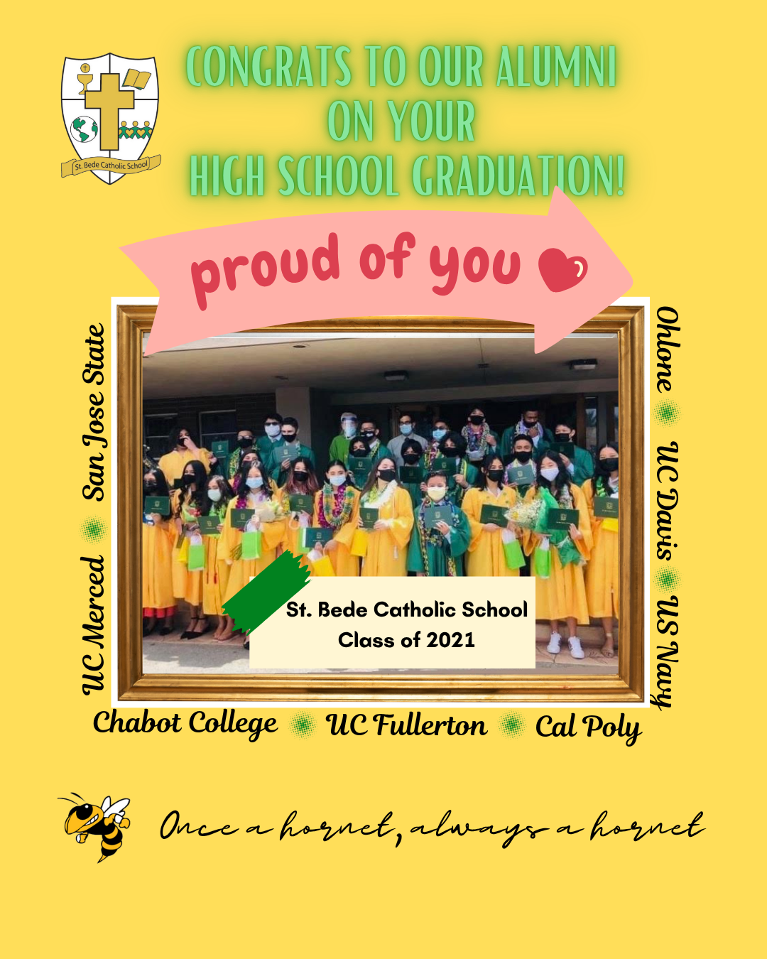 Our Class of 2021 graduated St. Bede during Covid, went to high school, and are off to college. You are in our prayers!